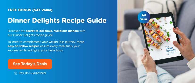 You receive the FREE Dinner Delights Guide, a $47 value, which gives you easy, delicious dinner ideas that support your weight loss.
